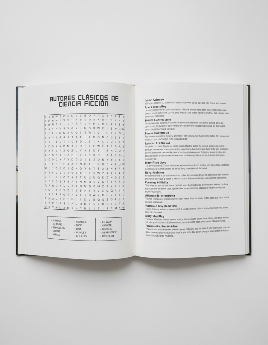 Explorando el Futuro combina sopas de letras, glosarios temáticos y páginas para colorear en un recorrido fascinante por la historia y los conceptos clave de la ciencia ficción.